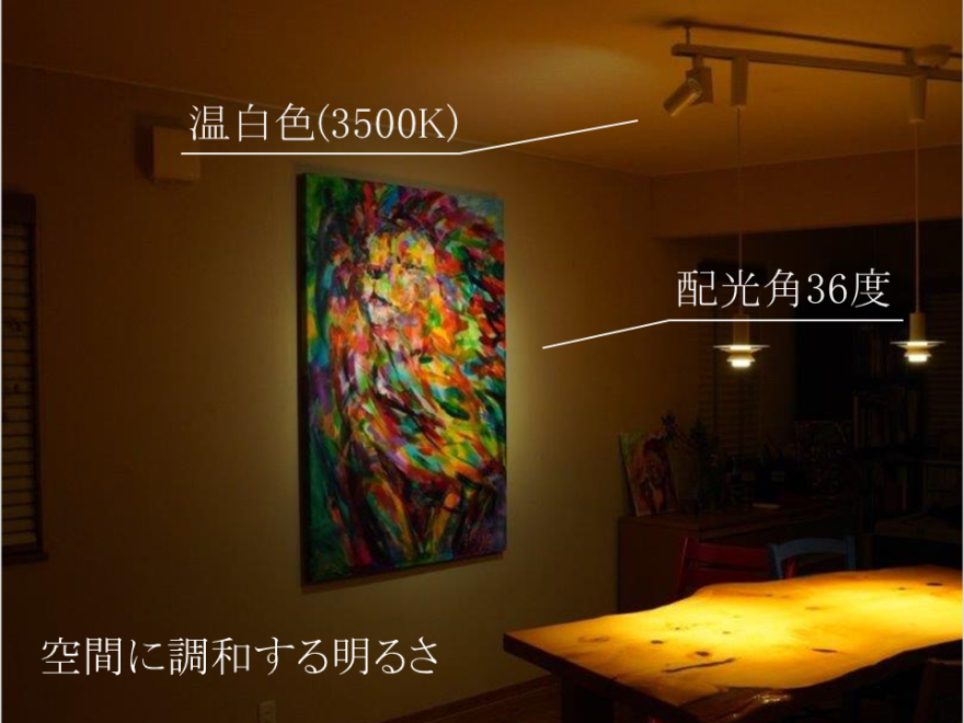 - 絵画の鑑賞に適した照明として、アート・美術展示で世界的な実績のあるLED電球を選定しました。
